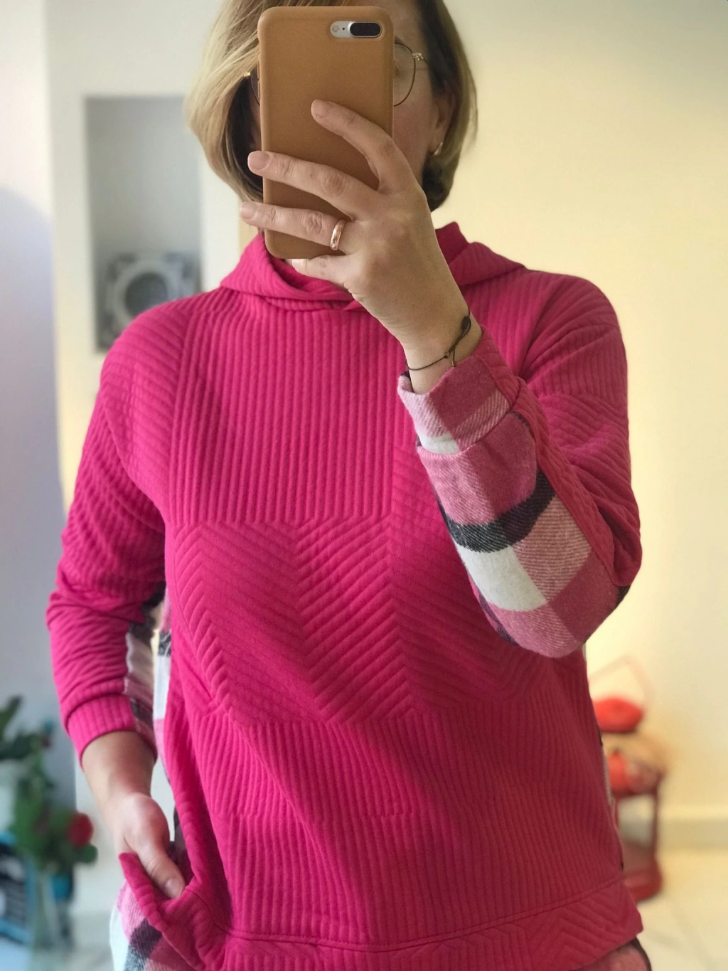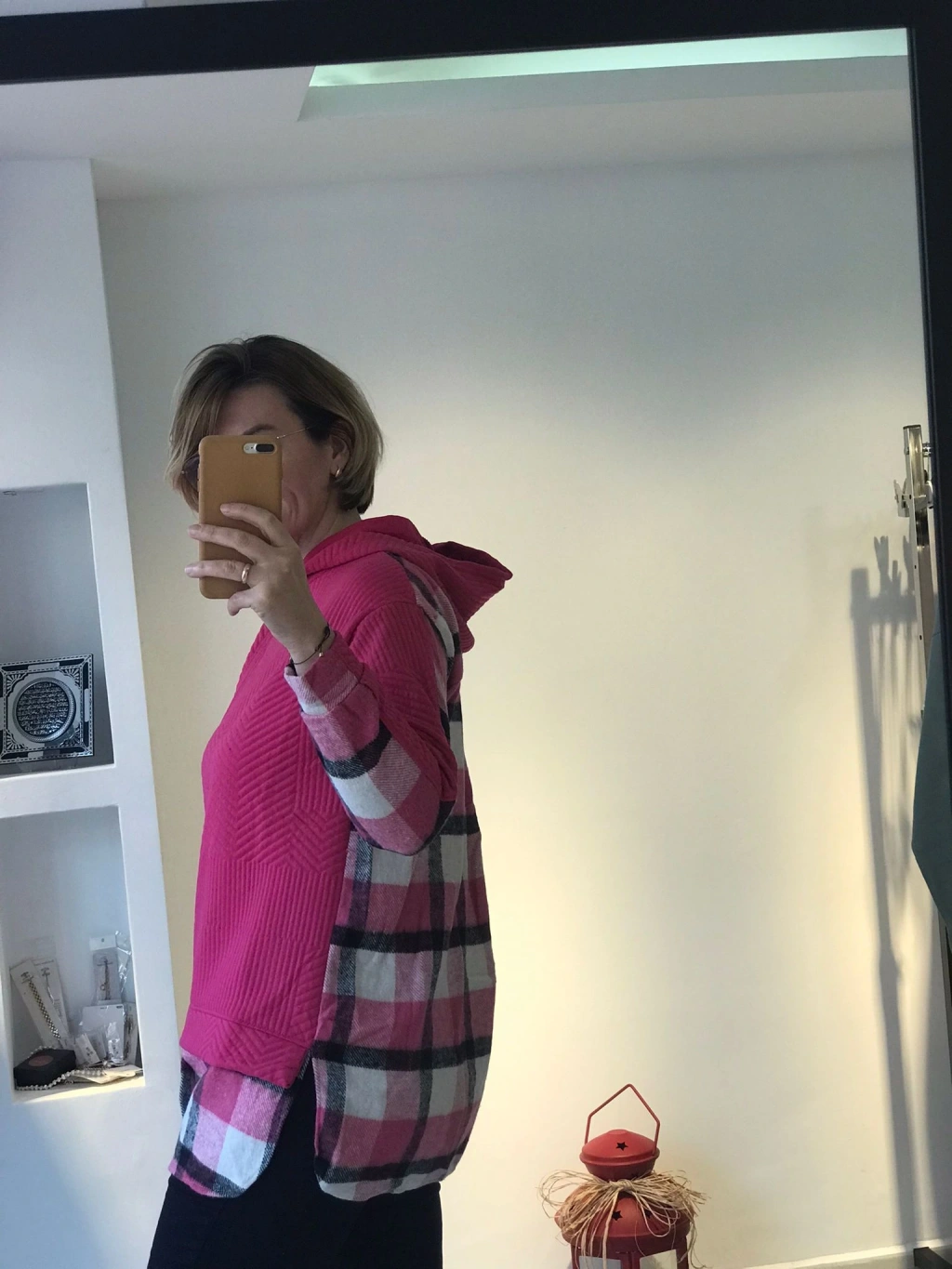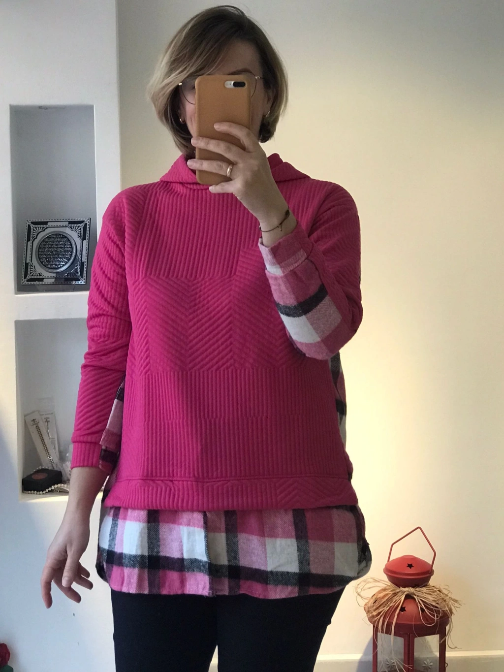 Fuşya Kapüşonlu Katmanlı Sweatshirt
