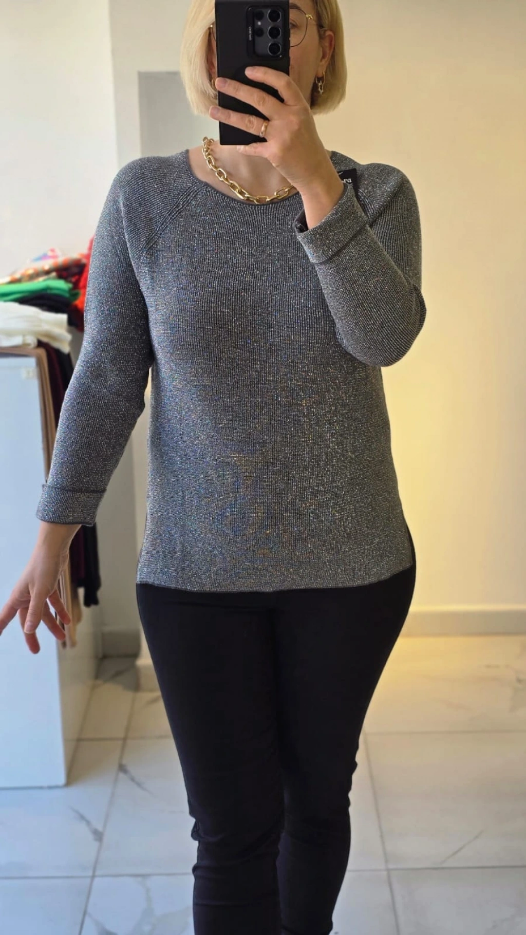 Gri Simli Yuvarlak Yaka Triko
