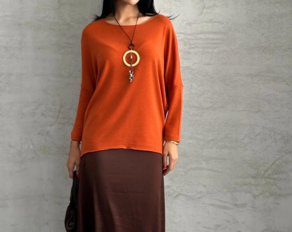 Kiremit Rengi Kayık Yaka Salaş Bluz