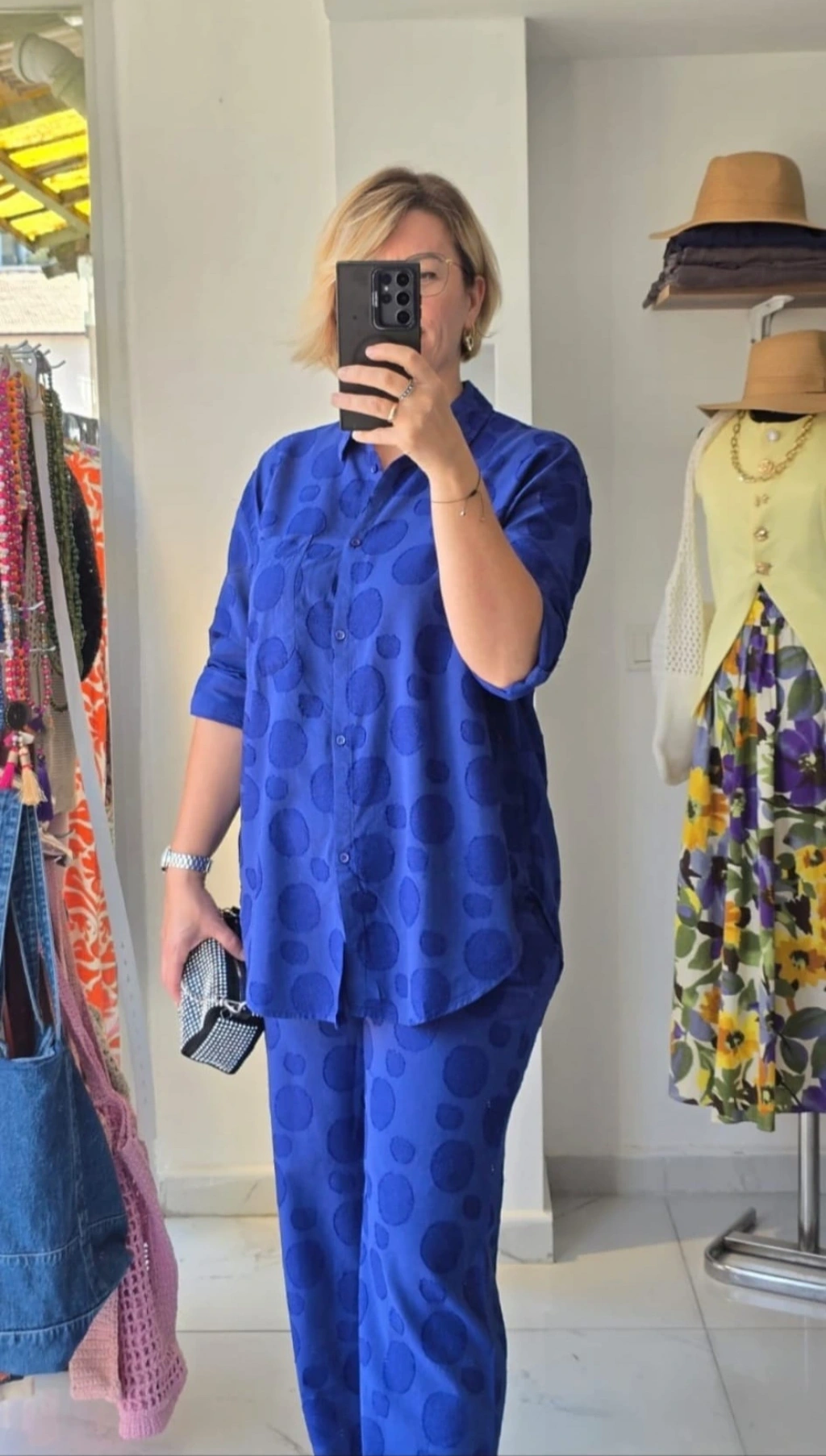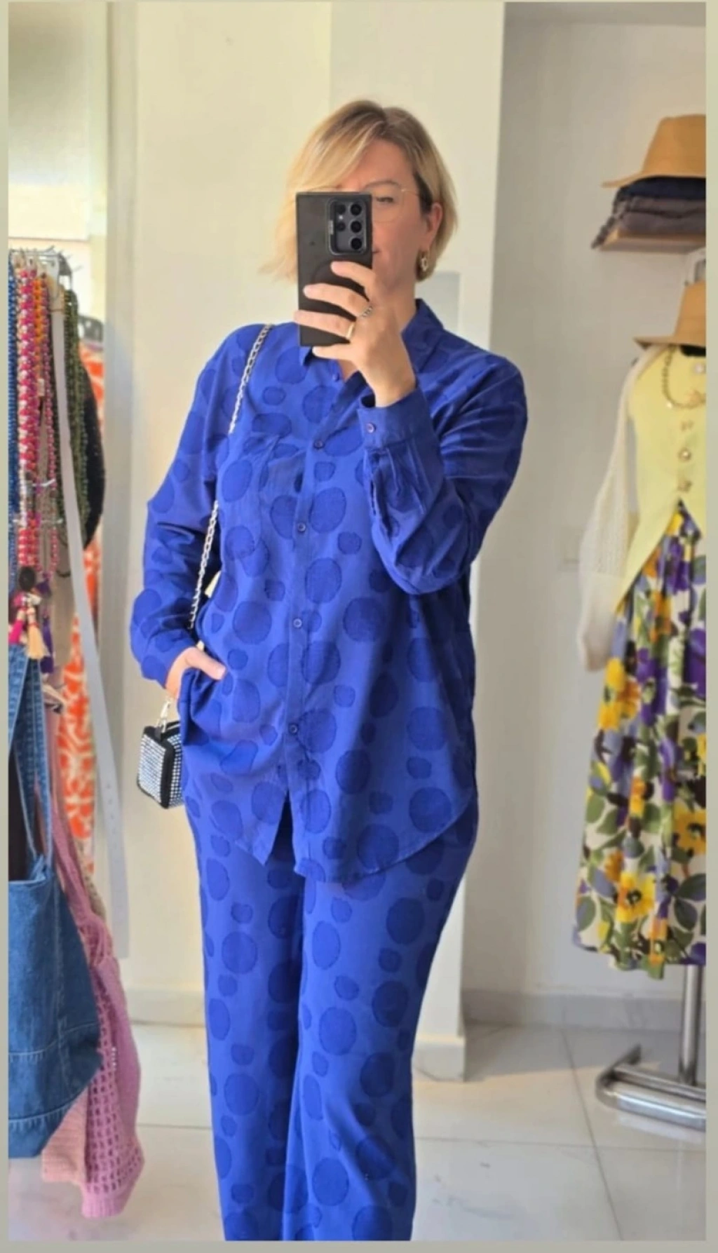 Mavi Puantiye Desenli Gömlek Pantolon Takımı