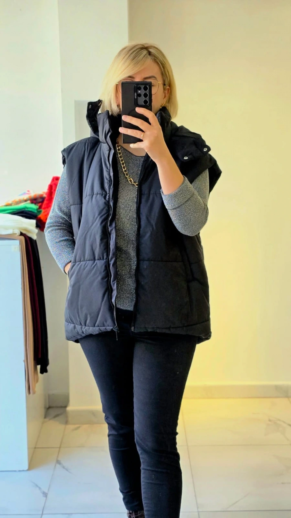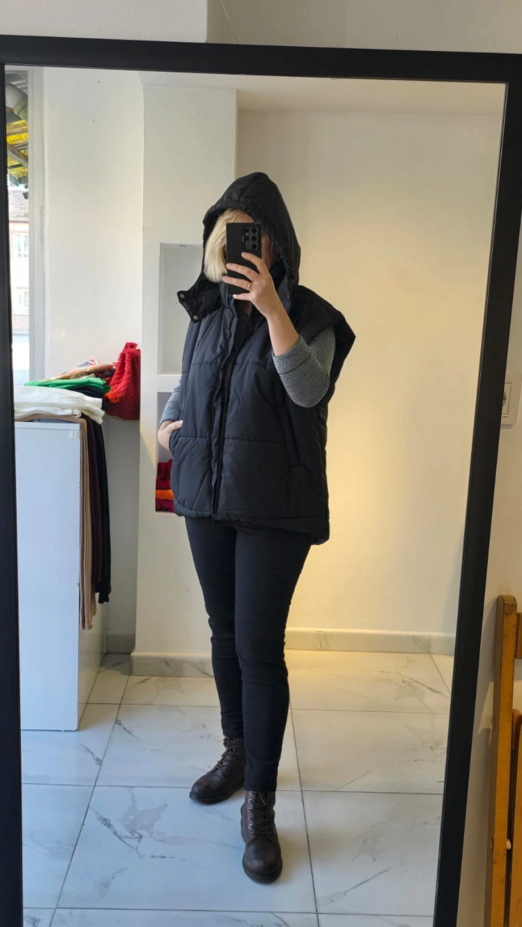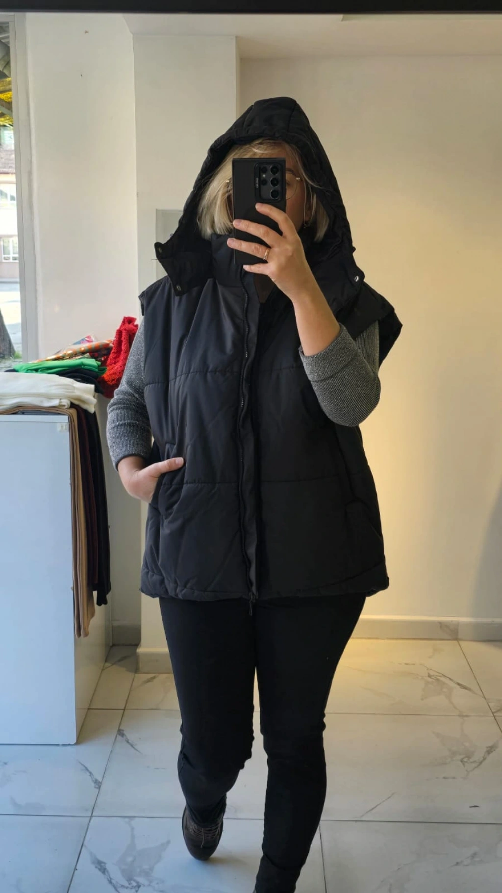 Siyah Kapüşonlu Şişme Yelek