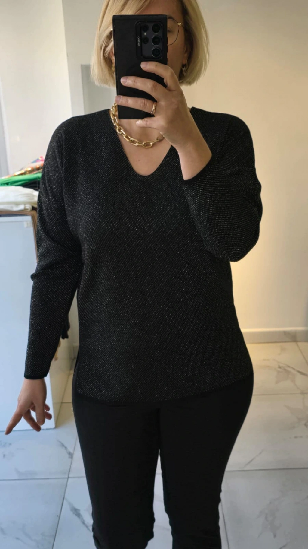 Siyah Simli V Yaka Triko